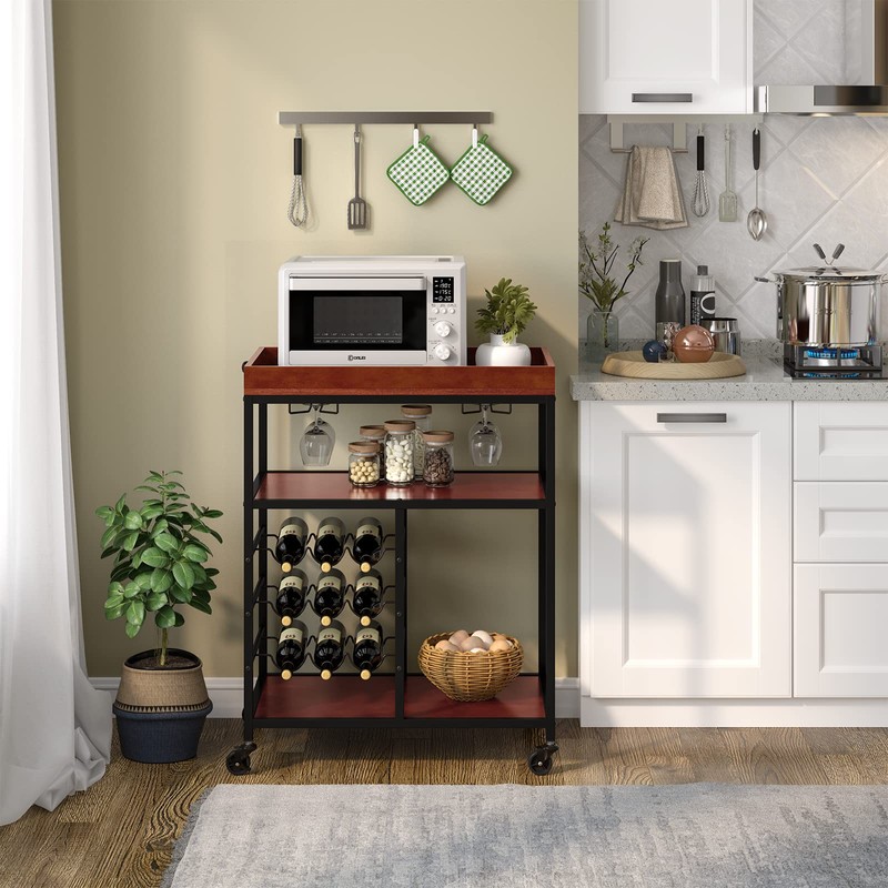 The 3-tier storage shelves, glass and wine holders provide sufficient storage space for fruits, food, drinks, glasses and more!