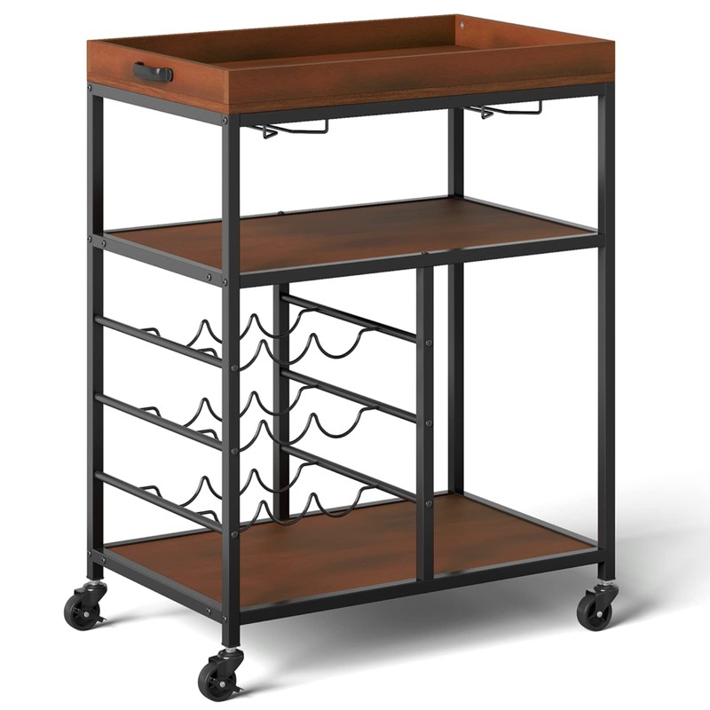 Made of high-quality engineered wood and metal frame, the bar cart is durable and stable for long term use.