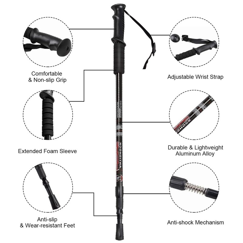 - EASY TO ADJUST: The walking stick can be freely adjusted from 65cm to 135cm based on your actual needs. When not in use, our telescopic poles could be folded up to be stored in your backpack or any suitcase.