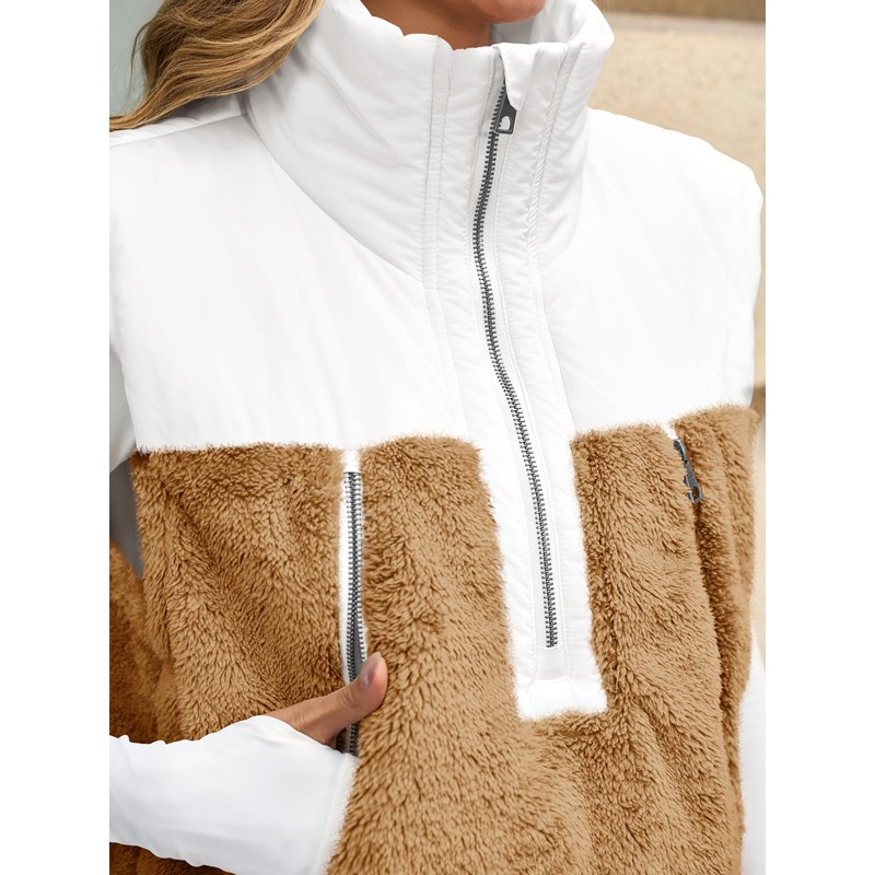 Tankaneo Womens Cropped Vests Outerwear Color Block Half Zipper Fleece Sherpa Sleeveless Winter Coats Jackets with Pockets