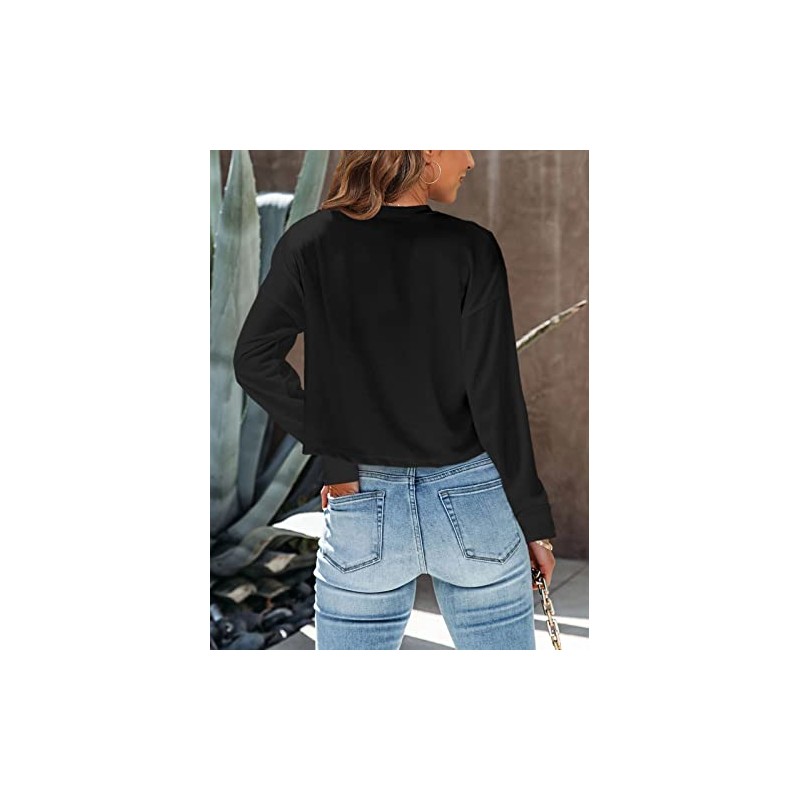 - Unique design: Cropped top is loose, long sleeve, drop shoulder, casual, solid color, relax fit; The classic round neck design showcases your beautiful neck and collarbone, more versatile, more casual and comfortable to wear. The overall design of the top is simple and generous.