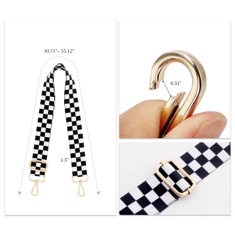 TANOSII Wide Purse Strap Adjustable Replacement Shoulder Crossbody Strap Handbag Strap Black White Grid
