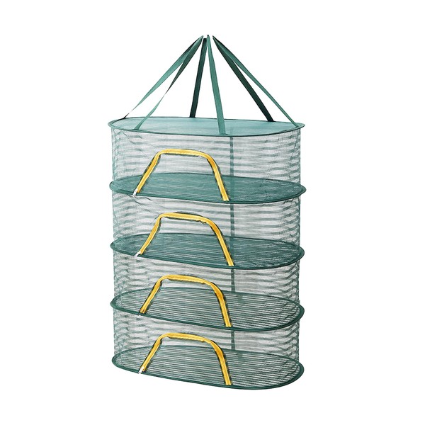 TANOVCEP Foldable Drying Net for Vegetables, Fish, and Dehydrated Goods, Multi-Tiered Food Drying Net, Versatile Drying Rack, Windproof Design, Zipper Closure for Insect Protection 4Layer Green