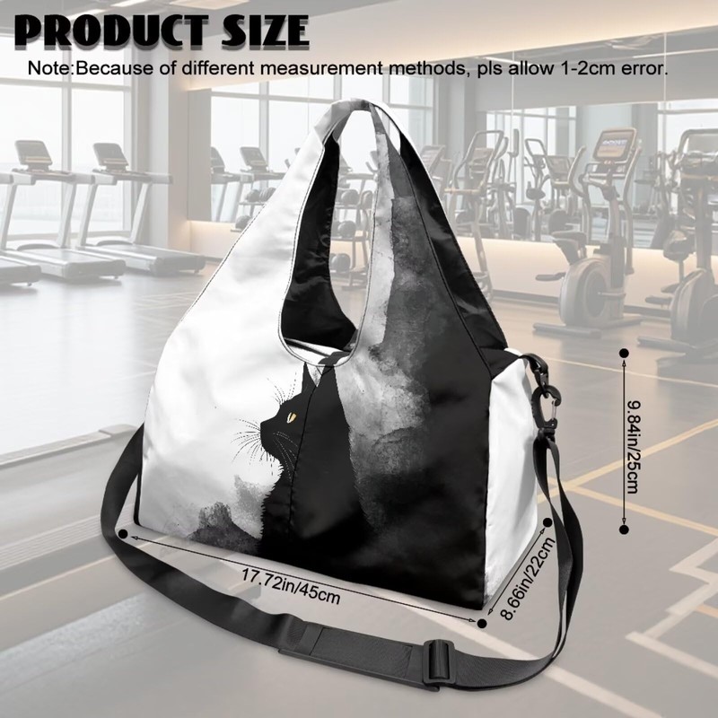 Tansealive Black Cat Print Gym Bag with Shoe Compartment Large Capacity Duffle Bags Portable Lightweight Gym Bag with Wet Pocket Water Resistant Yoga Mat Holder Duffel Bags Swimming Yoga Workout