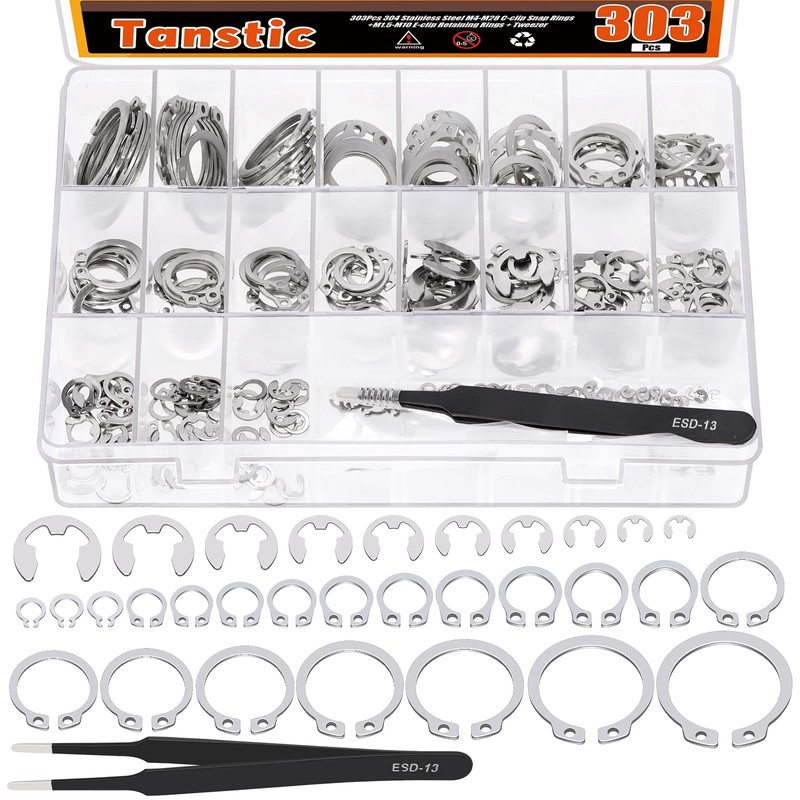 • What You Will Get: You will receive 202pcs C-clips (M4-M28), 100pcs E-clips (1.5mm-10mm) and 1pcs tweezers, in total 303pcs.