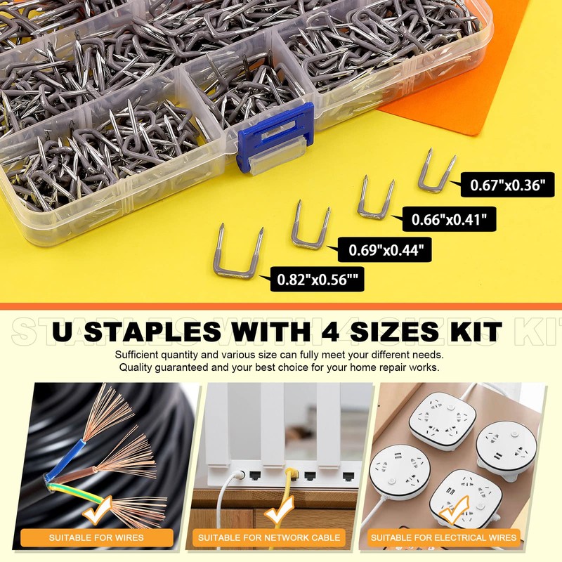 - √[PERFECT PACKAGE] Insulated U staple nail set comes with a plastic transparent storage box. Each size of U staples are well packaged in the storage box with grids individually, which helps to avoid mess and carry more easily.
