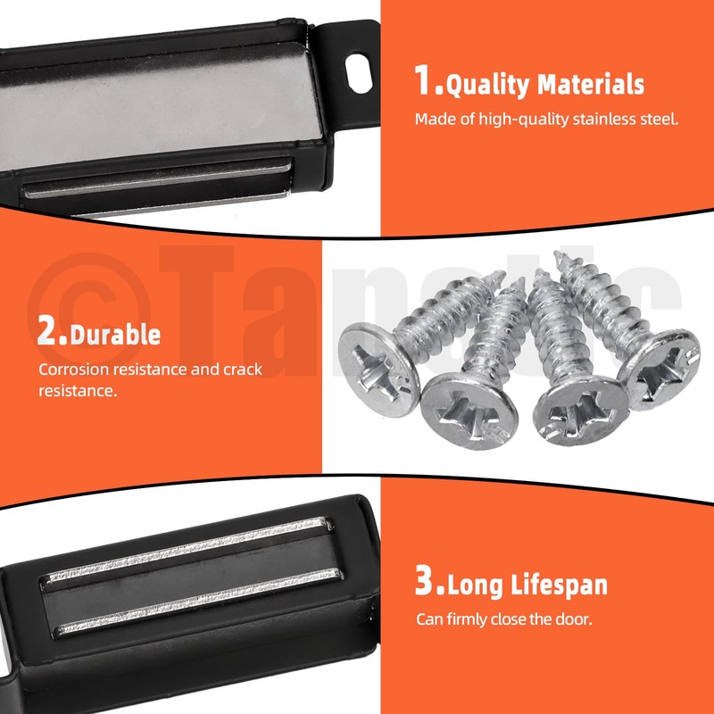 - Was Sie erhalten: Sie erhalten 8 Stück schwarze magnetische Schranktürverschlüsse mit einer Tragkraft von 15 lb und 32 Stück Schrauben. Ein komplettes Set ist praktisch für Sie zu verwenden.
