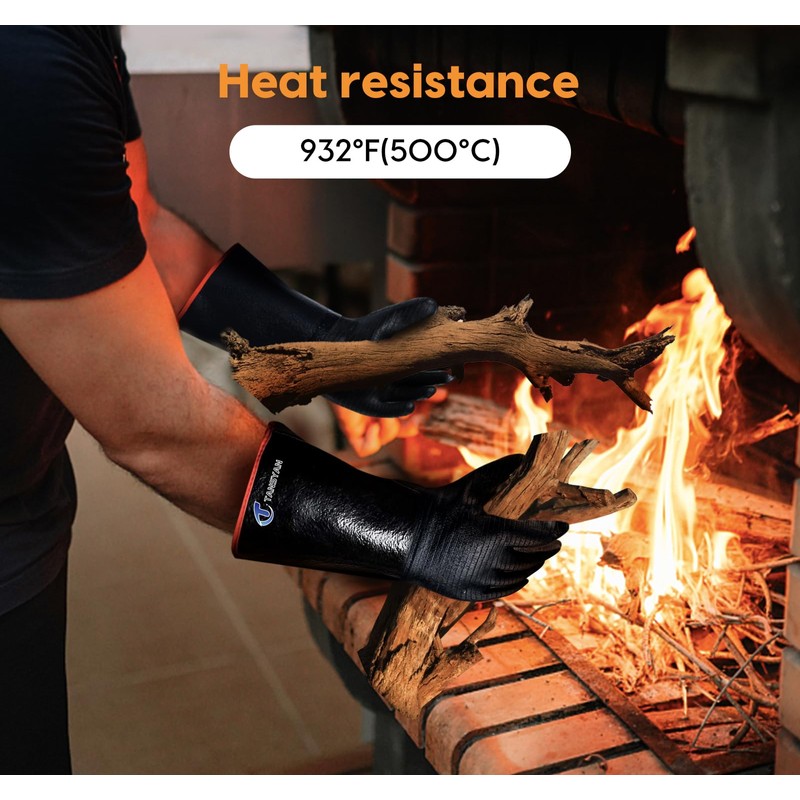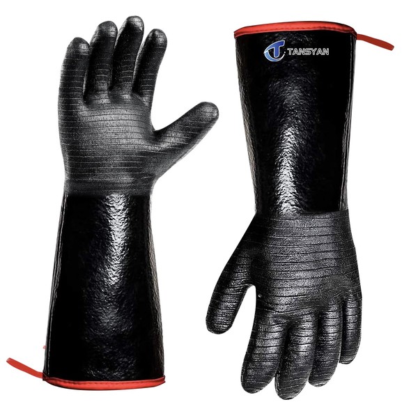 TANSYAN BBQ Gloves, 932℉Heat Resistant for Barbecue/Baking/Cooking/Pit with Waterproof,Oil Resistant so Easy to Clean(14 Inch)