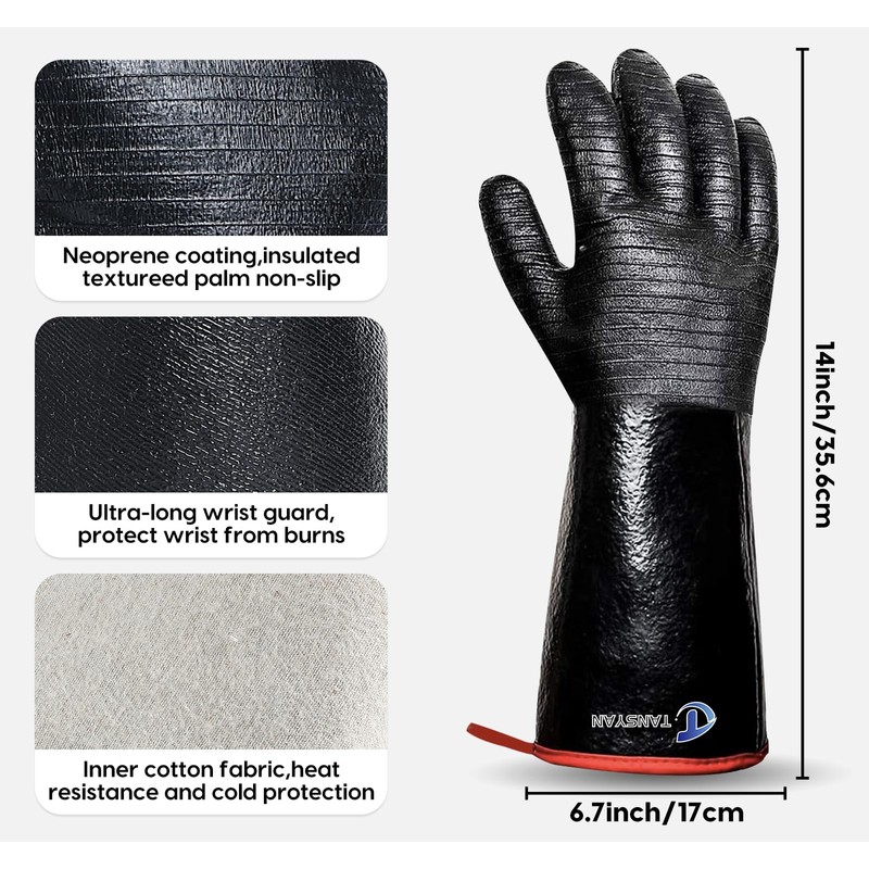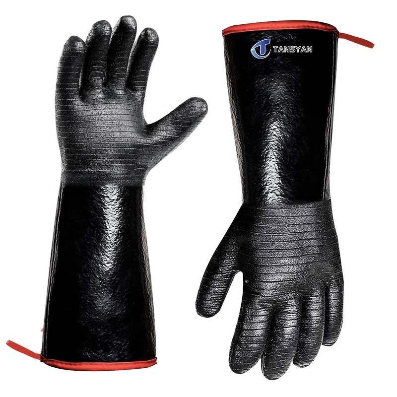 - PROTECTION FUNCTION – TANSYAN grill gloves are made with Food-grade neoprene rubber material that are high temperature oven heat resistant, steam ,bbp barbecue flame retardant, oil proof and scalding water. Effective protection of our hands to avoid injury.