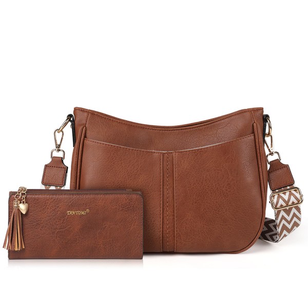 TANTOMI Crossbody Purses for Women 2 PCS Set Crossbody Bags and Women Wallet Brown Vegan Leather Purses and Handbags for Everyday