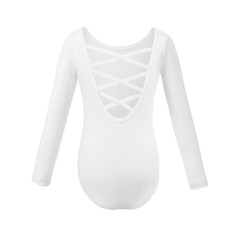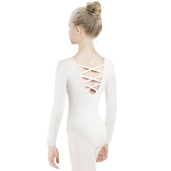 tanzdunsje Ballet Leotard Girls Ballet Jersey Children's Long Sleeves Ballet Body Dance Body Gymnastics Leotard Leotard for Children Women Size 100-170, White