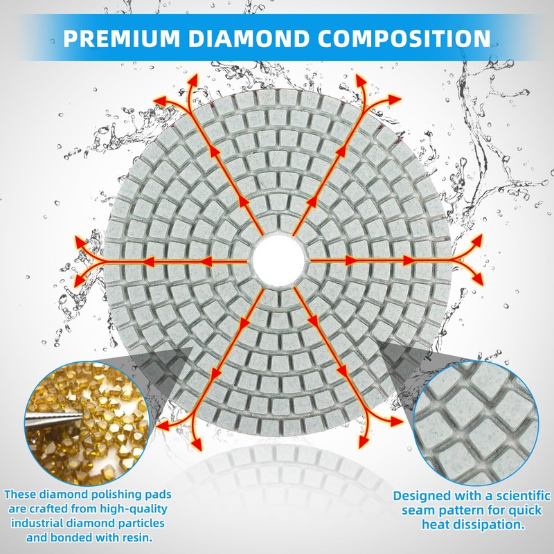 18 Pack 4 inch Diamond Polishing Pads Set Wet/Dry Polishing Kit 18pcs 30#-10000# Grit Pads with 2pcs Hook and Loop Backer Pads for Granite Stone Concrete Marble Floor Grinder or Polisher