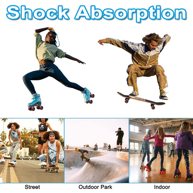 - 【82A HARDNESS】Roller skate wheels and toe stoppers are made of polyurethane polymer material, wear-resistant, good pressure resistance, 8-wheel PU shock absorption, skating more comfortable. Suitable for many occasions, indoor, outdoor, asphalt roads, parks.