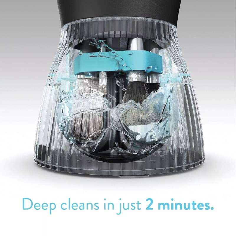 Makeup brushes are an investment, whether you're a professional artist or an enthusiast and washing dirty makeup brushes is a tedious, but necessary task. The TAO Clean Sonic Makeup Brush Cleaning Station turns a dreaded, time-consuming chore into a quick and easy afterthought, preserving both the brushes and your complexion with minimal time and effort. Using sonic technology and a gentle soap solution, up to six makeup brushes are cleaned in just two minutes.