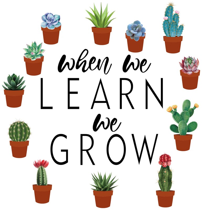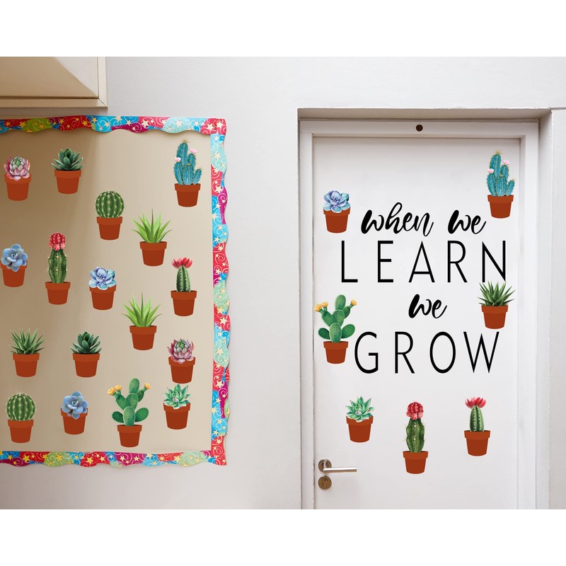 TaoBary 25 Pcs Succulents Cutouts Set Rustic Bloom Succulents Potted Plant Bulletin Board Decor Positive Motivational Succulents Paper Cuts When We Learn We Grow Wall Classroom School Decorations