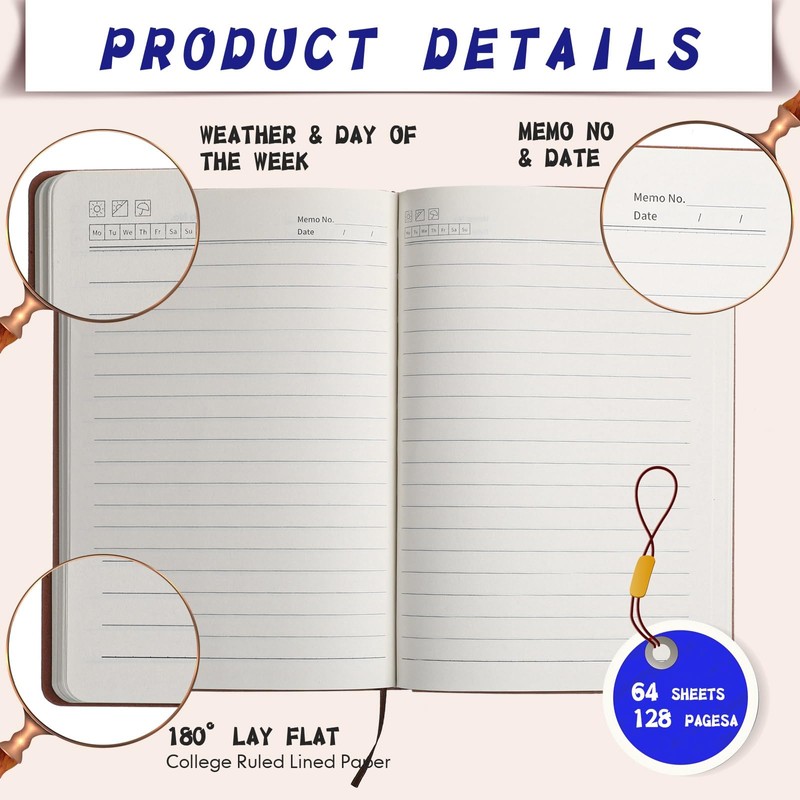 - Nice Writing Experience: ruled diary is mainly made of quality paper and soft PU leather materials, which are safe and reliable, preventing ink from leaking and staining your desk or clothes, and the color of the paper won't hurt your eyesight