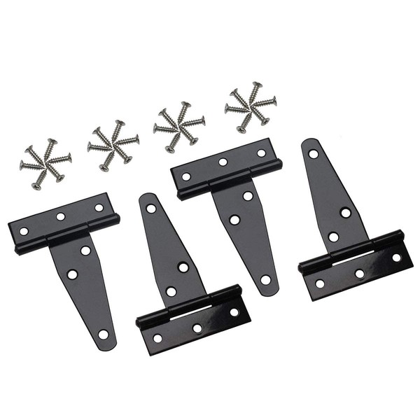 TAODAN 4pcs T Hinge Shed Hinge Gate Strap Hinge Black Door Barn Gates Hinges Hardware 4 inch