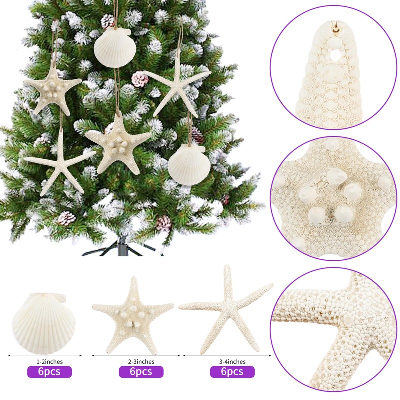 - Package Included: You will receive 18 pcs natural starfish and scallops shells, 12 pcs 2 inch - 3 inch starfish, and 6 pcs 1 inch - 2 inch scallops shells. Natural starfish and scallops shells can bring you a feeling of sea breeze and tropical decor