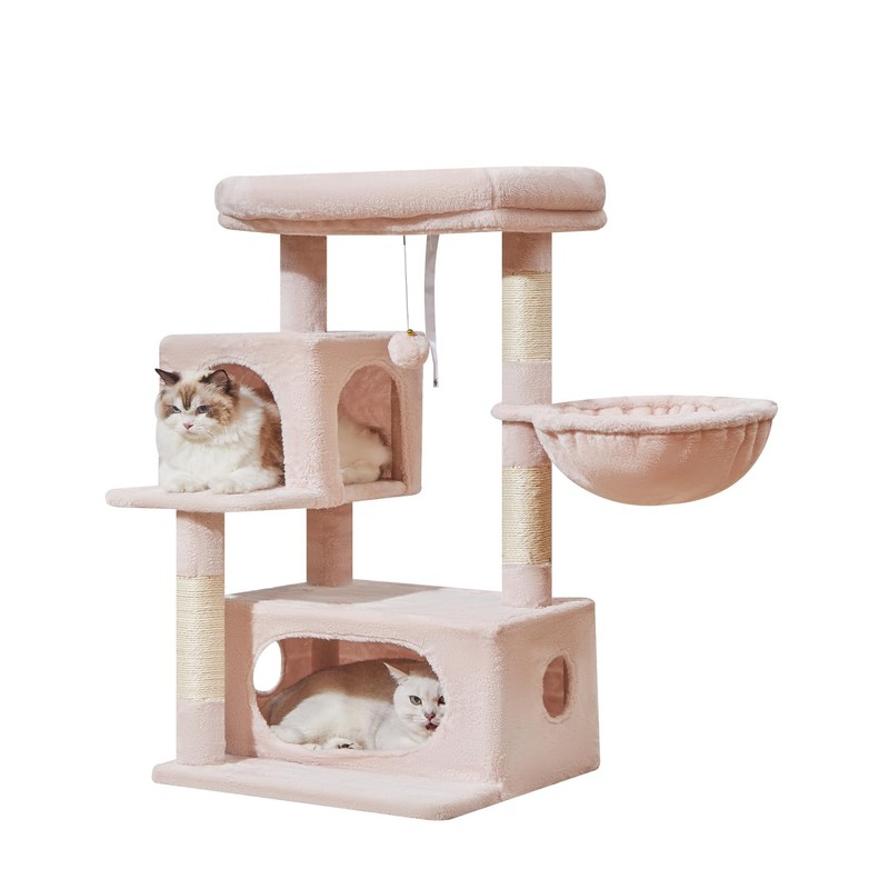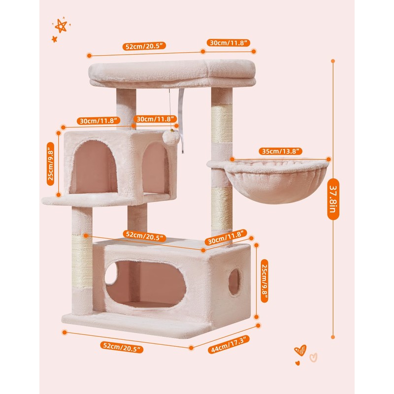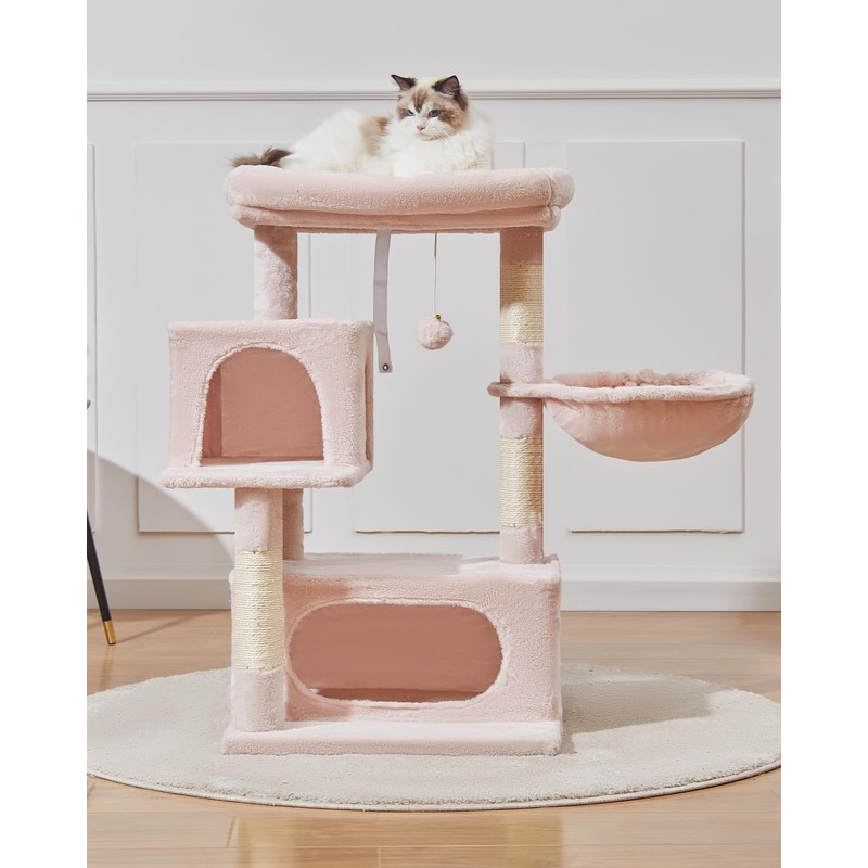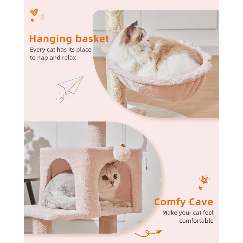 - Extra-large space: an elongated cat apartment, a modest cat apartment, a spacious hanging basket and an upgraded top platform give the kitten multiple options experience