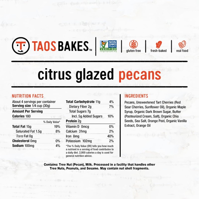 Taos Bakes Flavored Nuts - Gluten Free Snack - Non-GMO - Real Food - Baked By Hand - Citrus Glazed Pecans, 4 Oz Each (8 Count)