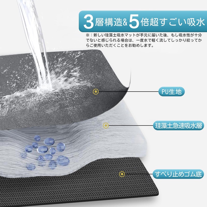 - Instant Absorption Drying Mat: Size: 15.7 x 11.8 inches (40 x 30 cm), Thickness: 0.2 inches (0.5 cm). Surface is made of super absorbent material. Instantly absorbs condensation from dishes and glasses Keep the mat surface dry and your kitchen environment always clean and comfortable. In addition, the absorbed moisture is air dry, making it easy to clean. If you feel that the new Diatomaceous Earth Absorbing Mat is not sufficiently absorbent after you receive it, we recommend that you rinse it gently with water once and squeeze it tightly
