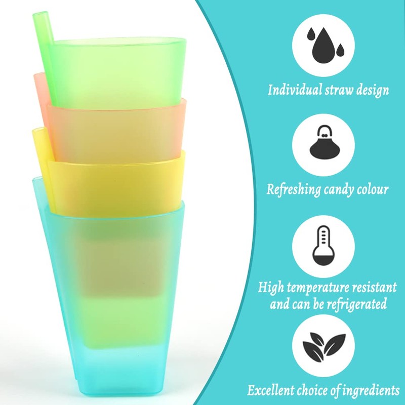 Taozoey Built-in Straw Cups, 4 Colours Drinking Cup with Built-in Straw Cup, Children's Cup with Integrated Straw, One-Piece Straw Cup, Ideal for Daily Use (360 ml, Pack of 4)
