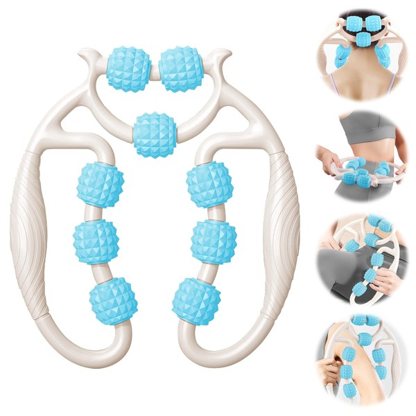 Taozoey Massage Roller, Massage Roller, Leg Massager, Cellulite Deep Tissue Massage Arm, Massage Roller with Handle Leg, Massage Roller (White + Blue)