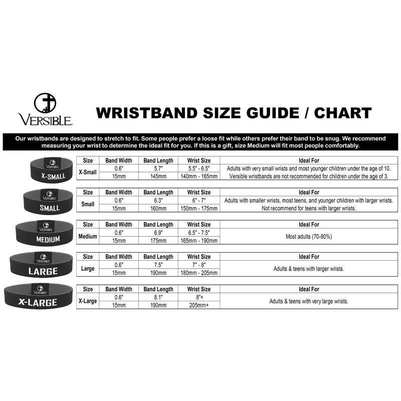 Versible® is excited to introduce our new line of Tap To Pray™ wristbands. No app required, just tap the patch with your smartphone to receive a new bible verse and prayer every day. We've also added the ability for you to receive a new verse and prayer anytime you want, simply hit the "New Verse" link on the bottom of the page! Tap To Pray works with most smartphones. Our wristbands are soft, stretchy, reversible and waterproof! With two reversible patterns on each wristband and 5 sizes to choose from, it's easy to find a Tap To Pray wristband that's right for you!