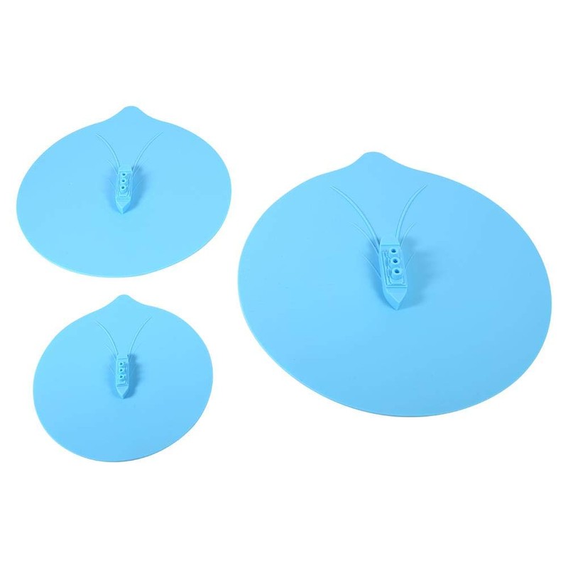 Tapas de silicona para sartén, juego de 3 piezas Diseño único de barco de vapor Cubierta de sello de silicona Olla Taza Tapa de taza Gadgets de cocina Azul, tapas de silicona