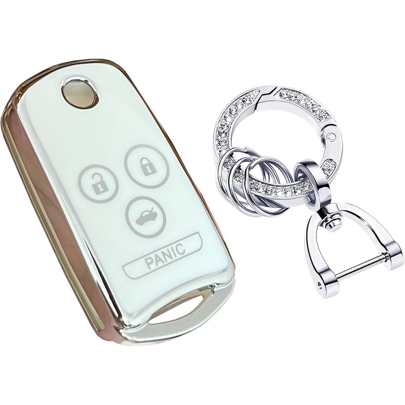 TAPAYICA For Acura Key Fob Shell Remote Key Fit for Acura MDX, RDX, TL, TSX, ZDX, Honda Accord (4 Buttons White-Silver), Small