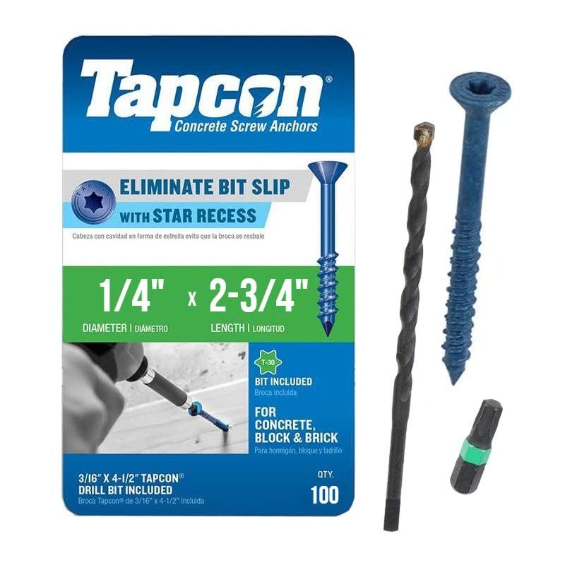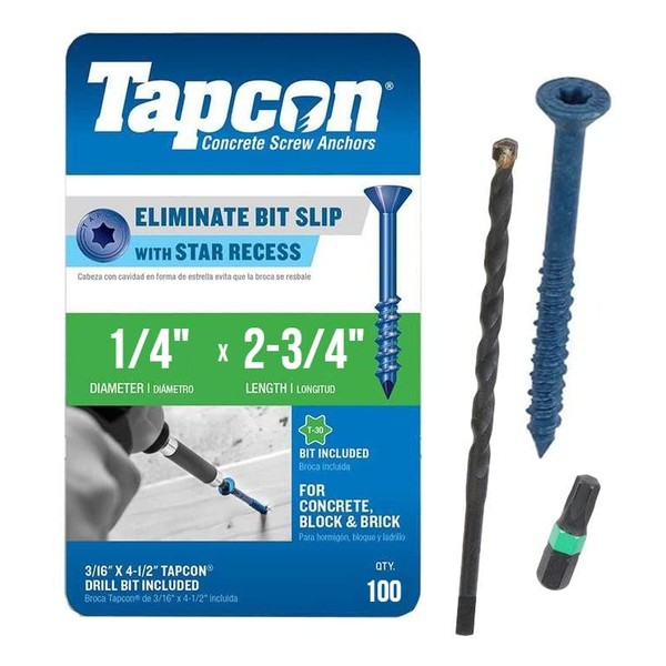 Tapcon 1/4" x 2-3/4" Star Torx Head Concrete Anchor Screws 3189407V2 | 100 Pack | Drill Bit Included