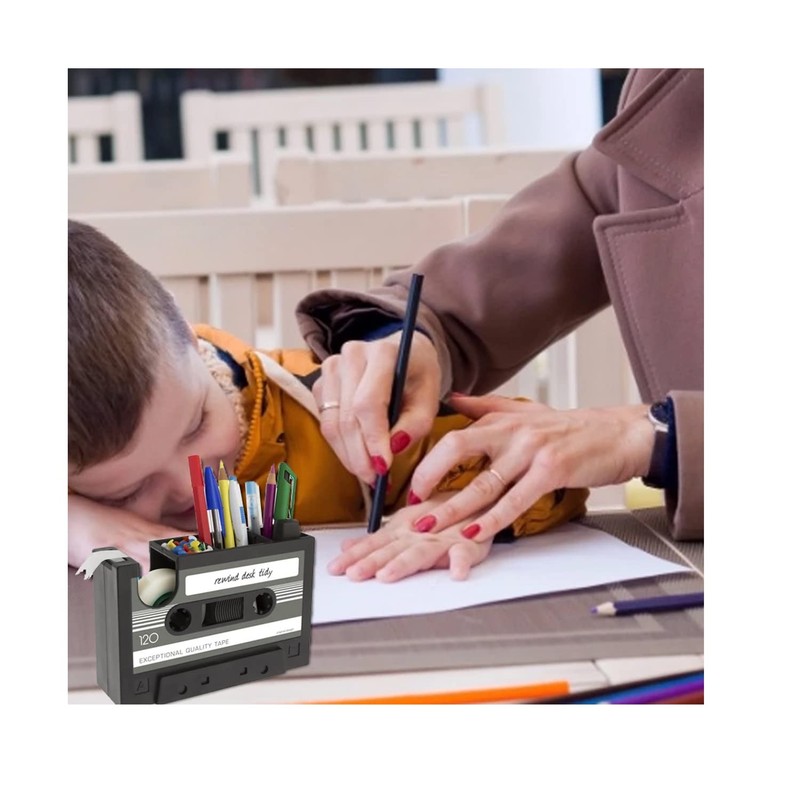 - Special Retro Cassette Tape Design - This retro design makes this pen holder really eyecatching, it's not just a pen holder, but also a tape dispenser. the retro Tape Dispenser decorates the desk surface full with traditional style and reminds people of the old days.