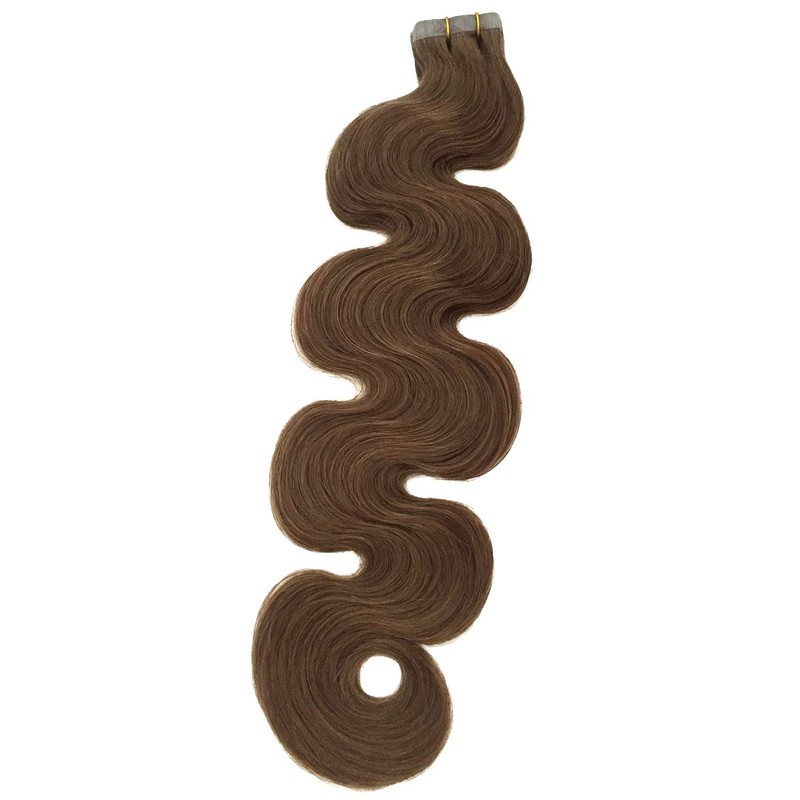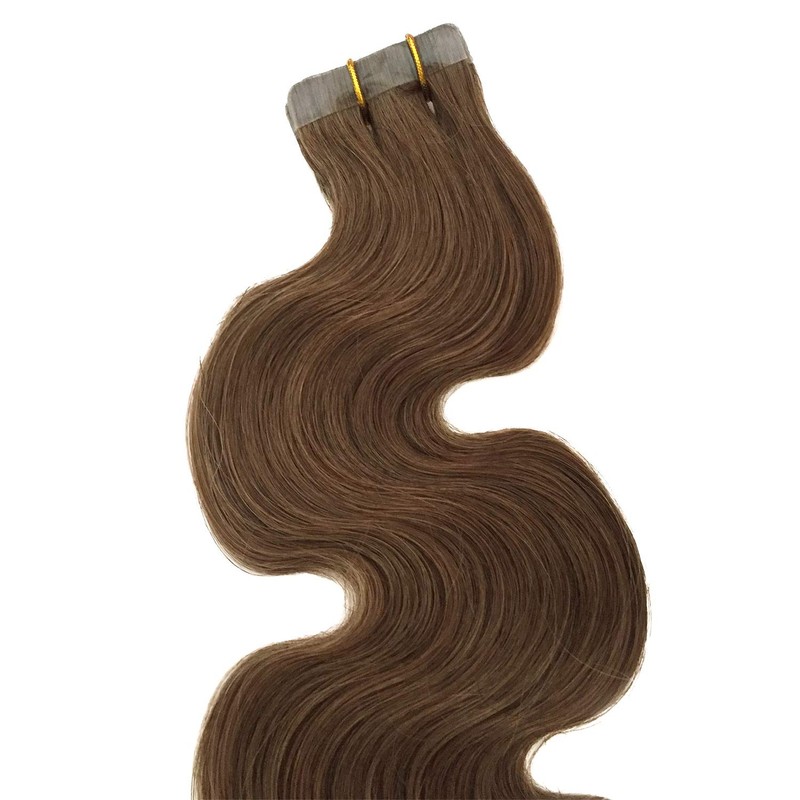 Tape in Extensions #8 Ash Brown Hair Seamless Skin Weft Tape in Body Wavy Remy Hair Extensions Wave Glue in Extensions 18" 40g 20Pcs/Package