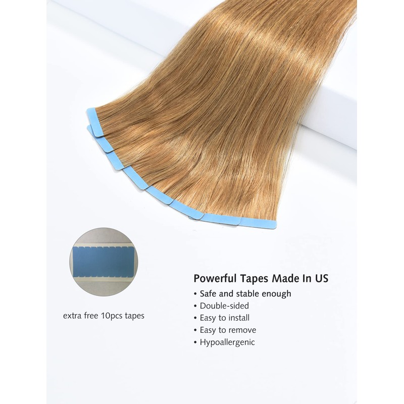 - POWERFUL TAPE MADE IN US ◆ You must have suffered a lot from inferior tape. We selected strong sticky blue adhesive tape made in the United States,to ensure that our tape hair extensions is safe and stable enough.Double-sided tape last up to 6 weeks and it is easy to install or remove without hurting your own hair.The REMY hair is pasted to weft by special technology,no shedding happened.Note that it should be used after the hair is washed and dried.Wash 24 hours later when your first use.