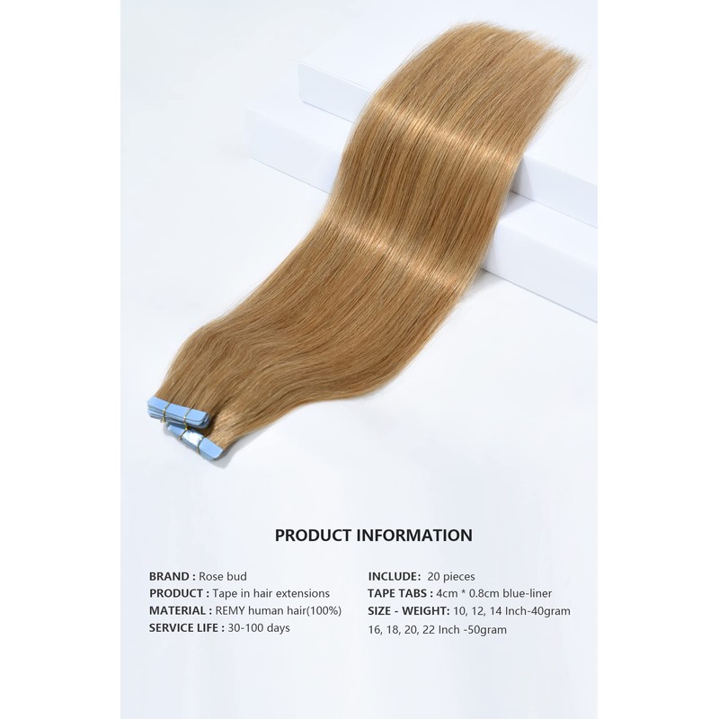ROSEBUD tape in extension selected invisible skin weft tape made in US.It can be instantly applied to parted areas of the head,and attach to your hair seamless and safe.No need for secrets.