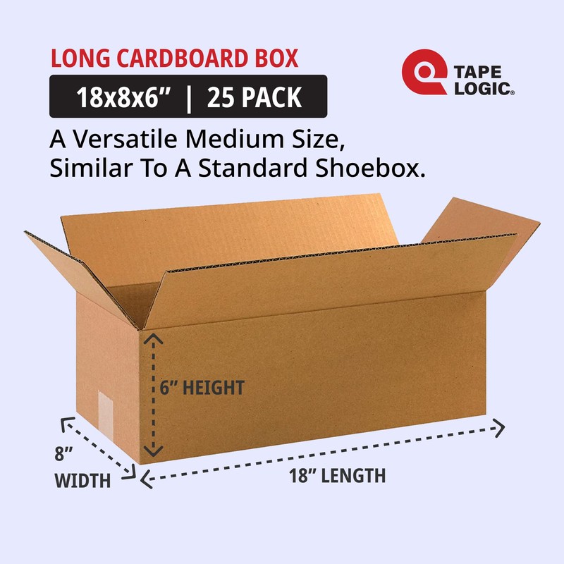 TAPE LOGIC 18 x 8 x 6 Corrugated Cardboard Boxes, Long 18"L x 8"W x 6"H, Pack of 25 | Shipping, Packaging, Moving, Storage Box for Home or Business, Strong Wholesale Bulk Boxes