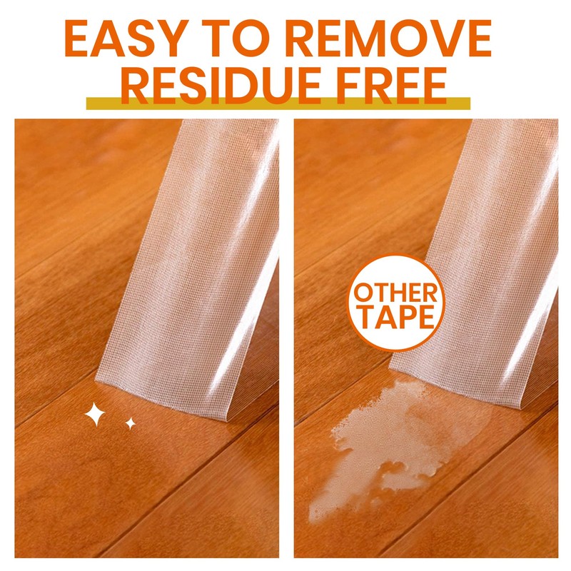 - INVISIBLE & RESIDUE-FREE: Ultra-thin 0.01" clear tape is hidden completely under rugs, with no visible strips or color mismatch. It could remove cleanly without residue from floors and carpets.