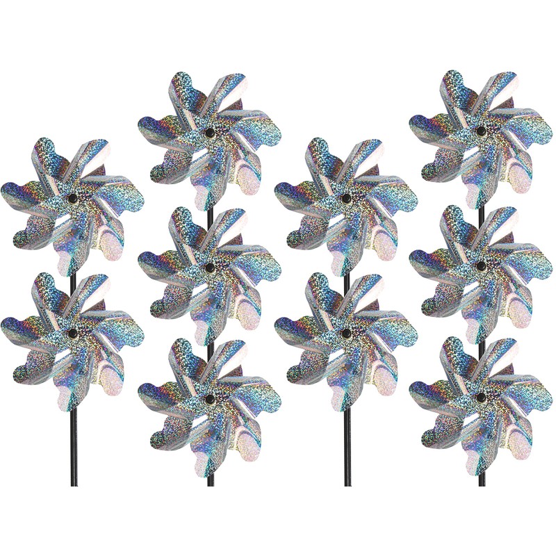 Tapix Bird Blinder Pinwheels (10 Pack) 15 inch Pinwheel Bird Deterrent, Holographic Pin Wheels for Yard and Garden, Garden Spinners