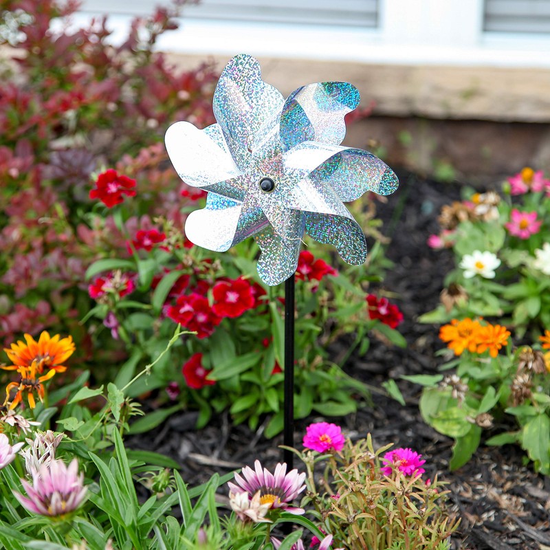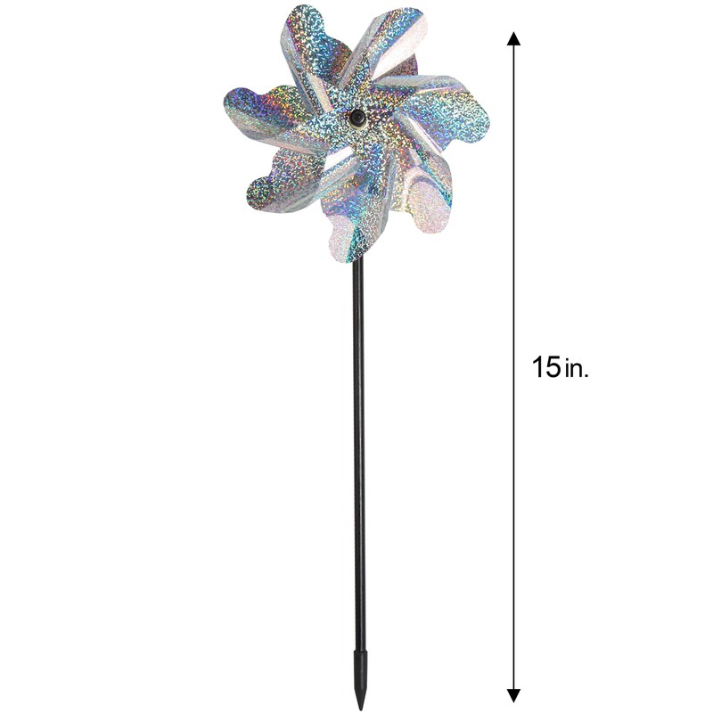 - Yard Decoration - Garden spinner pinwheel is 15 inch reflective enough to get the bird's attention from afar. Very stylish pinwheels for yard and garden to scare away birds that can be mounted anywhere to beautify your surroundings.