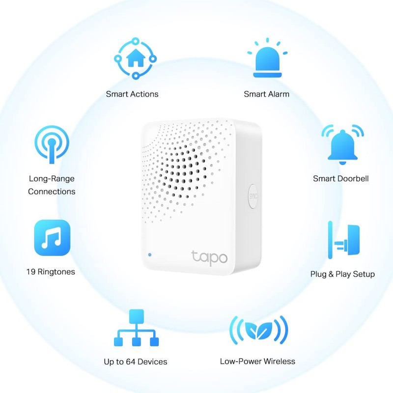 Tapo Smart Iot Hub with Chime, Work with Tapo Smart Switch, Button and Sensor, Connect Up to 64 Device, 19 Ringtone Options, No Wiring Required (Tapo H100)