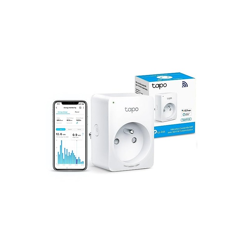 Tapo WiFi Socket Consumption Tracking 16A Type E Compatible with Alexa and Google Fan Control Air Conditioning Energy Saving Voice Control Tapo P110(FR)