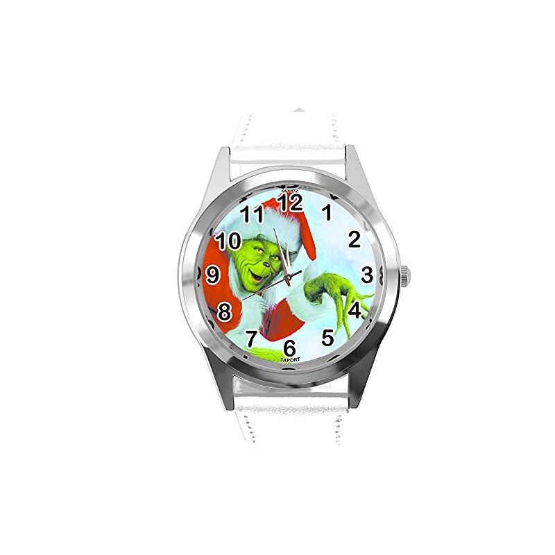 TAPORT® White Leather Round Quartz Watch for Christmas Fans E2