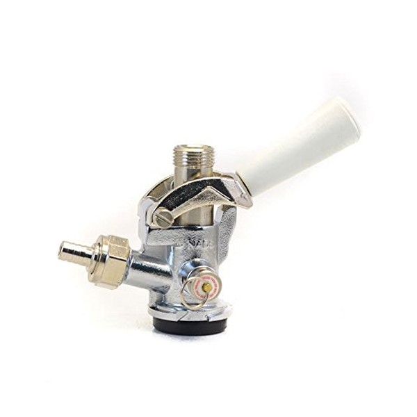 This is a D System Lever Style Keg coupler / A high-capacity pressure relief valve has been incorporated as an integral part of the coupler body. This serves two purposes: first, when functioning with other relief devices in the system, it will prevent a keg from reaching pressures in excess of recommended working pressure. Secondly, it allows the user to relieve pressure when needing to prevent or correct dispensing problems