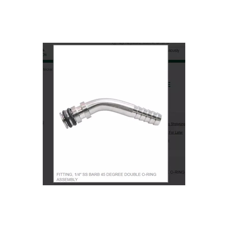 Taprite FITTING, 1/4" SS BARB 45 DEGREE DOUBLE O-RING ASSEMBLY # 625-0014
