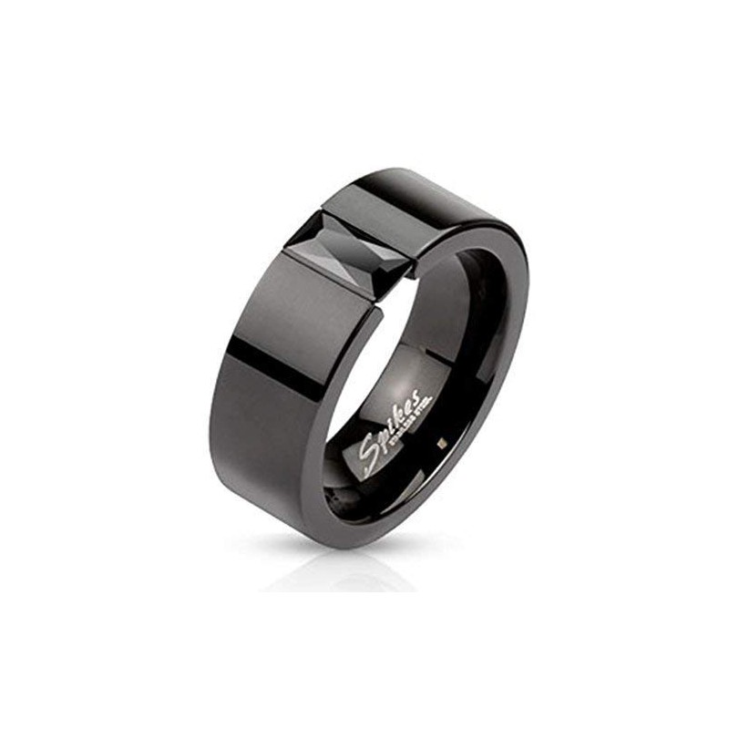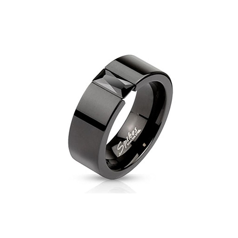 Tapsi´s Coolbodyart® Band Ring Stainless Steel Zirconia Rectangular Black 6 mm Wide 47 (15) 69 (22), Stainless Steel