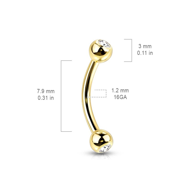 Tapsi´s Coolbodyart® PVD Coated Titanium Male Thread Curved Barbell Implant Quality with Cubic Zirconia