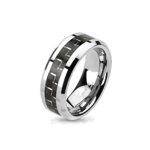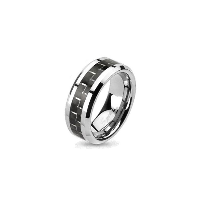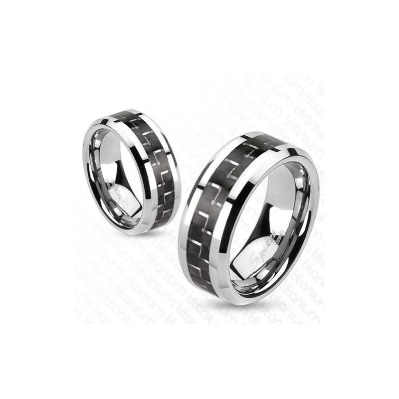 Tapsi´s Coolbodyart® Unisex Titanium Silver Black Carbon Inlay Ring Ring Sizes J to Z Available, Titanium