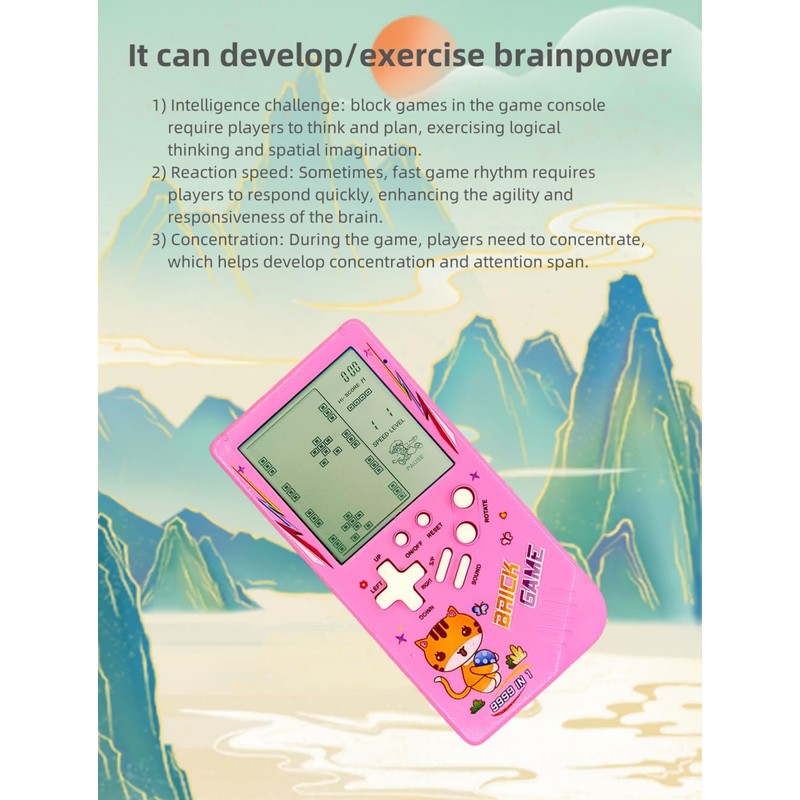 - The cute cat pattern block game console. The workmanship is exquisite and there are four colors to choose from: blue/pink/yellow/green. Although the square game is simple, it can train the player's hand-eye coordination ability and is therefore perfect as a gift. It is one of the best gifts for children/friends.