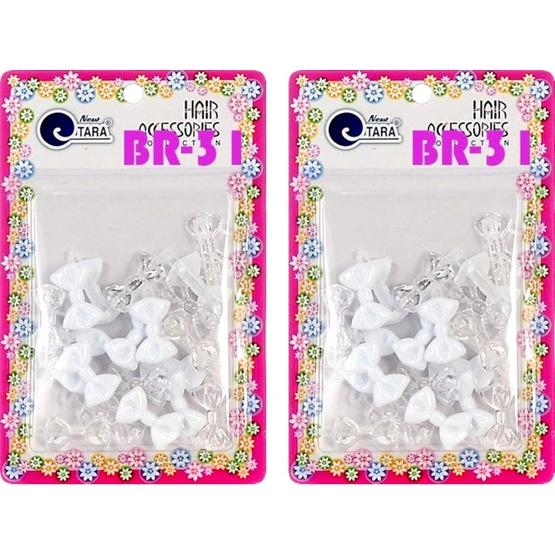 Tara Girls Self Hinge Multi Design Plastic Bow Hair Barrettes Selection Pack Of 2 (BR31)