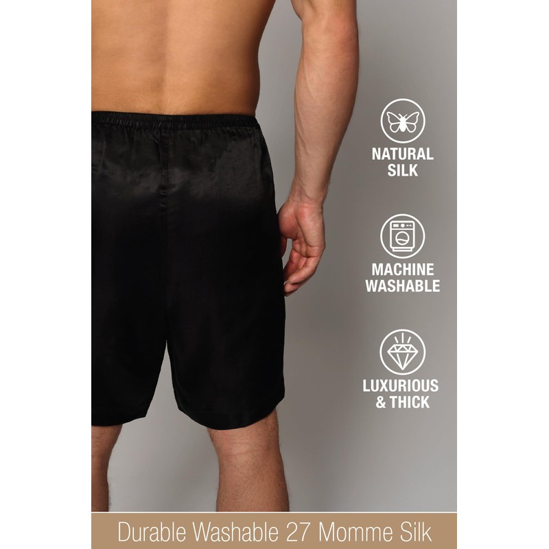 - Our men's long silk boxers are crafted from 27 momme natural mulberry silk, offering outstanding density and durability. Designed for ultimate comfort and extended wear, they are also machine washable for easy care.